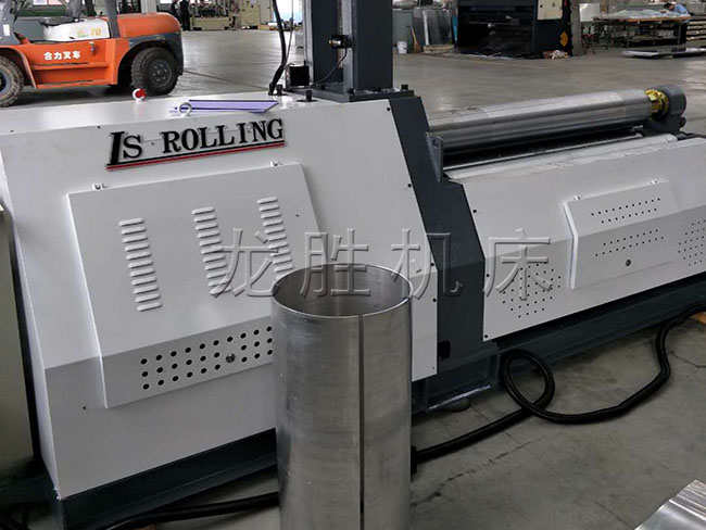 該機優點是板材端部預彎及卷圓可以在同一臺設備上進行。